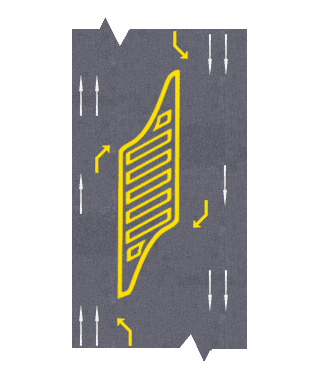 Área constituída e delimitada por linhas contínuas de cor amarela, definindo a intersecção das vias nos cruzamentos e entroncamentos; significa proibição de entrar na área demarcada, mesmo que o direito de prioridade ou a sinalização automática o autorize a avançar se for previsível que a intensidade do trânsito obrigue à imobilização do veículo dentro daquela área.